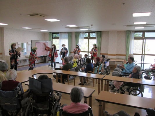 受け入れ再開一発目となる今日は「シャンソンズ」様による歌唱披露でした。